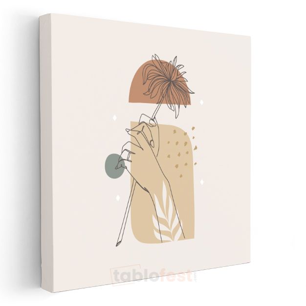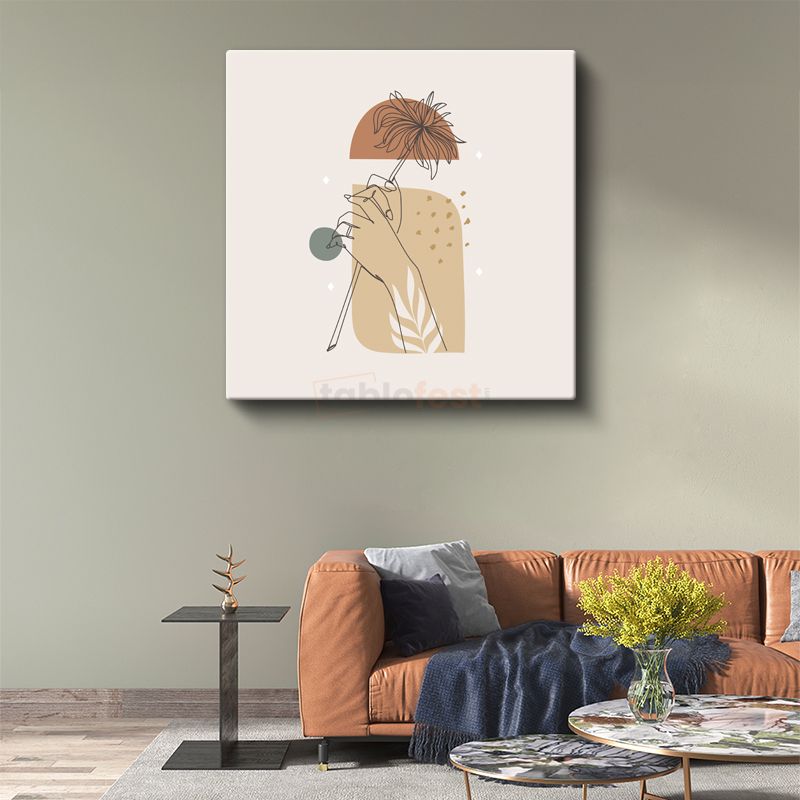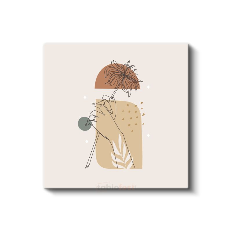 Botanik Dokunuş - Çiçek Tutan El İllüstrasyonlu Kanvas Tablo