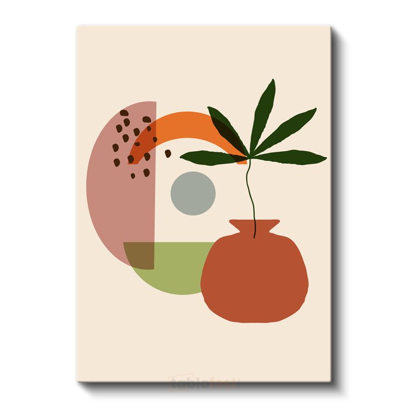 Botanik Harmoni - Minimalist Geometrik Desenli Kanvas Tablo