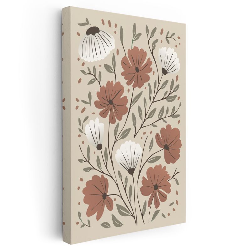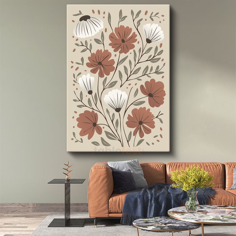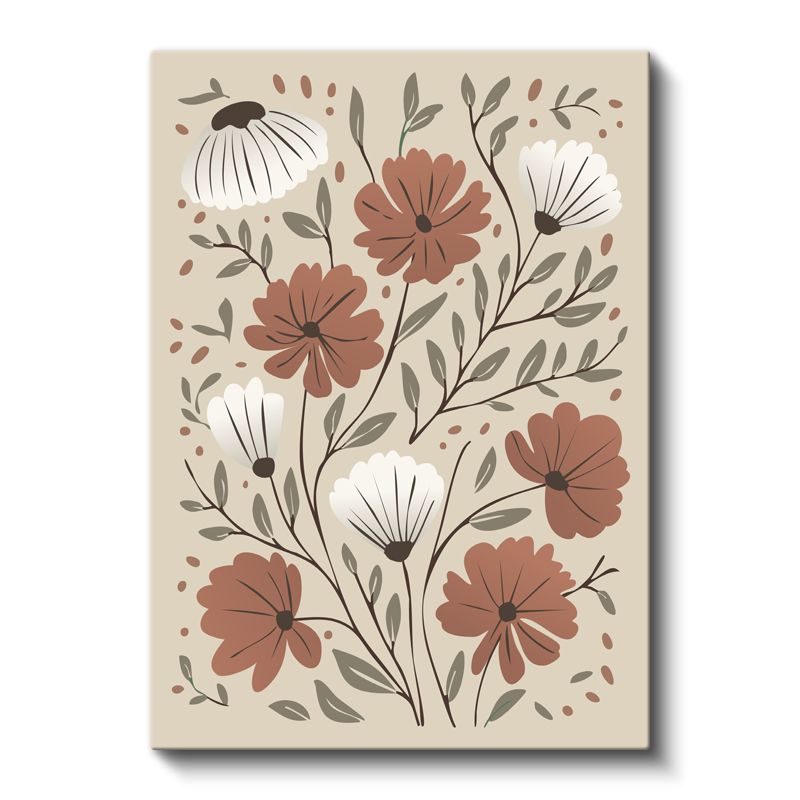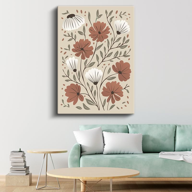 Botanik Harmoni - Stilize Edilmiş Çiçek Desenleri Kanvas Tablo