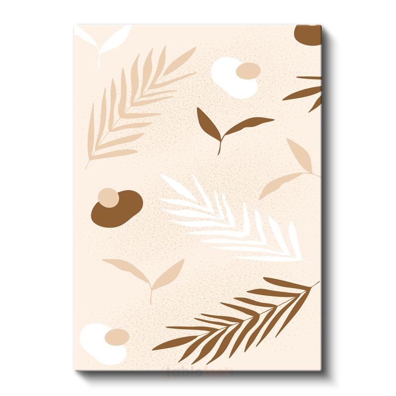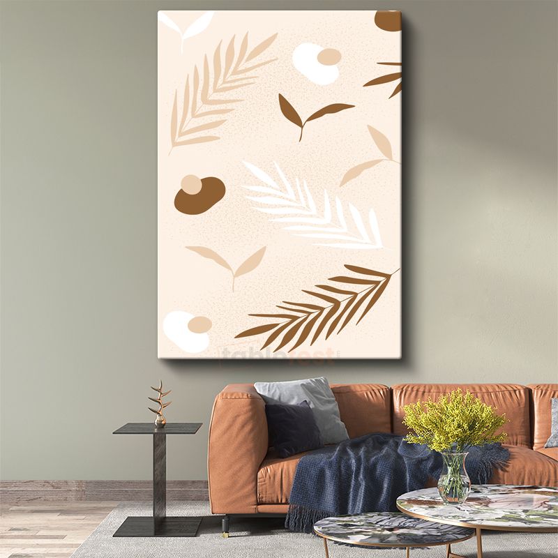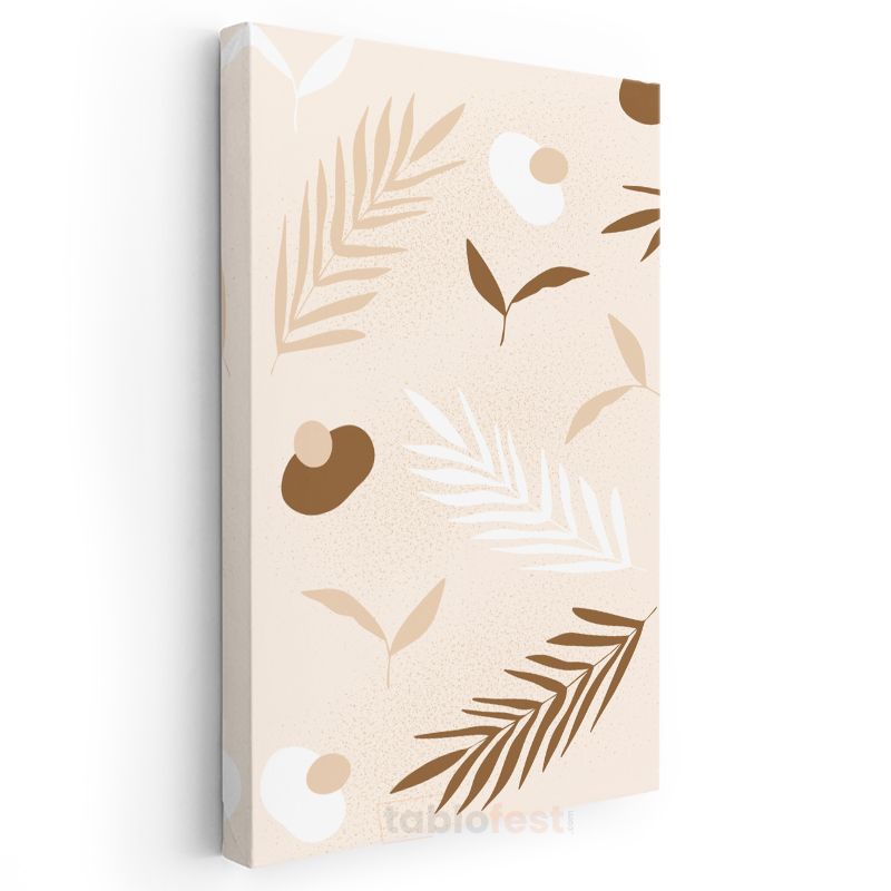 Botanik Minimalizm - Bej Tonlarında Yaprak Desenleri Kanvas Tablo