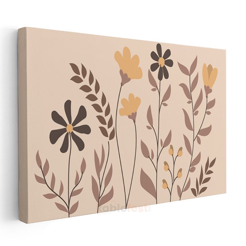 Botanik Siluetler - Minimalist Çiçek Kompozisyonu Kanvas Tablo