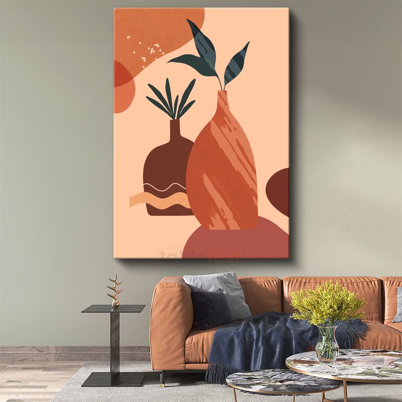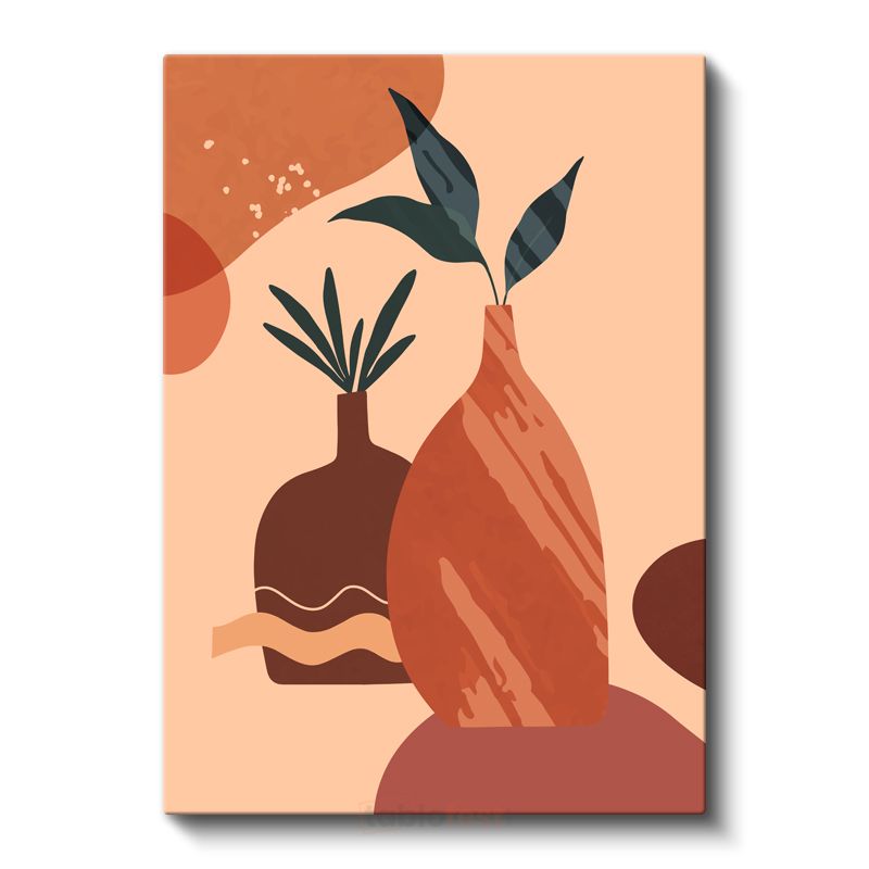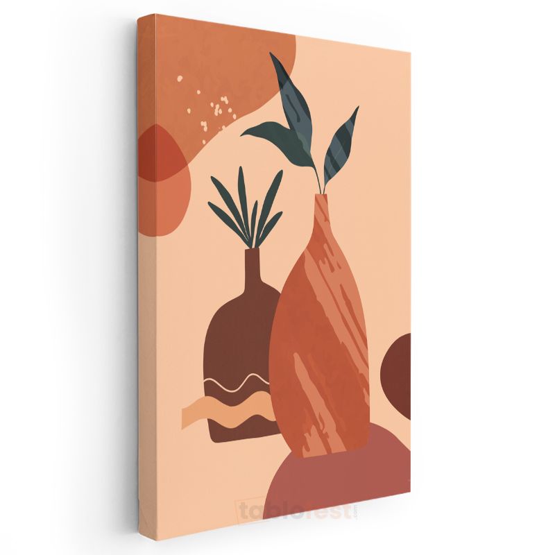 Botanik Soyutlama - Toprak Tonlarında Minimalist Vazo Kompozisyonu Kanvas Tablo