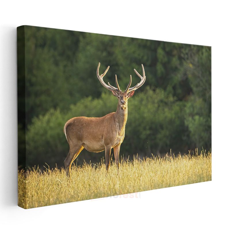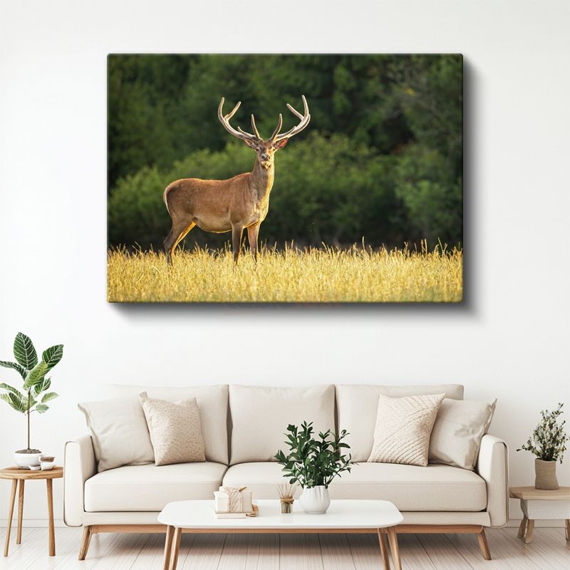 Boynuzlu Geyik - Altın Sarısı Çayırda Heybetli Bekleyiş Kanvas Tablo