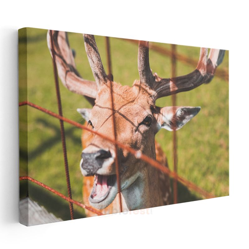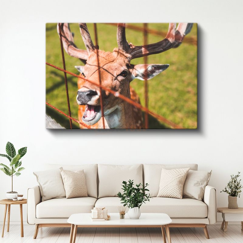 Boynuzlu Geyik - Çit Arkasından Meraklı Bakış Kanvas Tablo