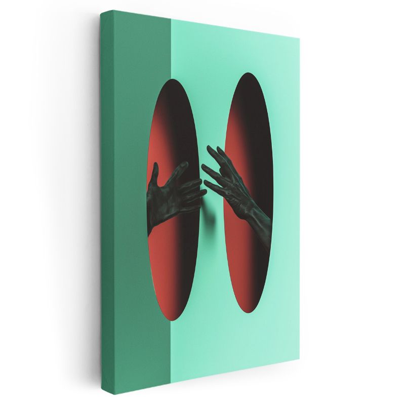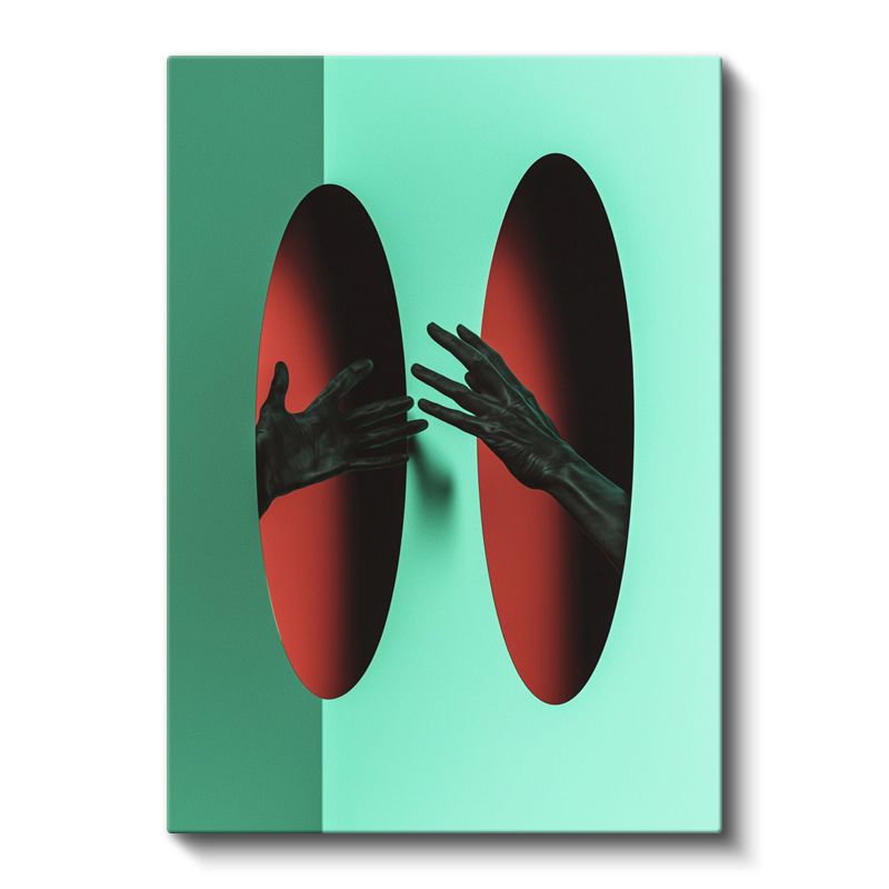 Boyutlar Arası - Kırmızı Portallara Uzanan Eller Kanvas Tablo