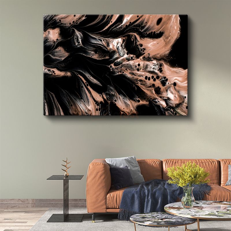 Bronz Dalgalanma - Siyah Kontrast Akışkan Formlar Kanvas Tablo