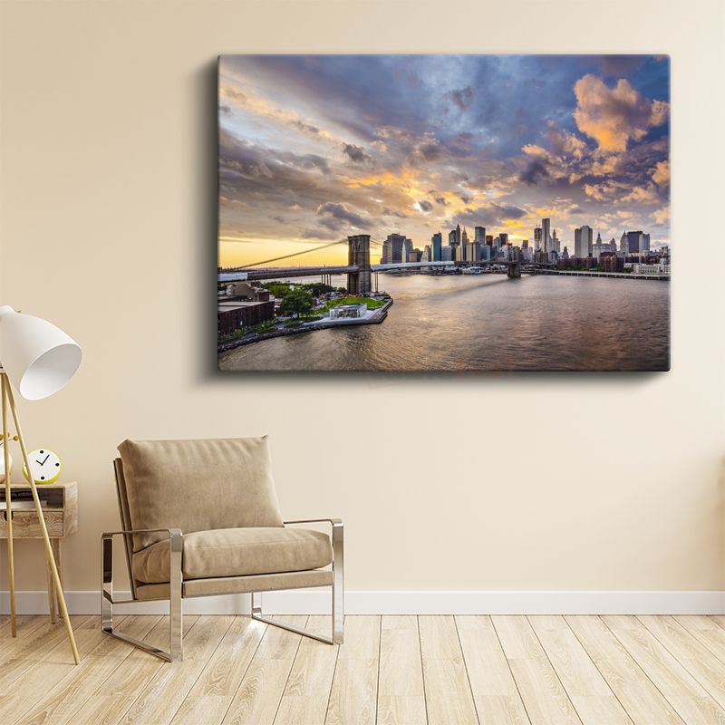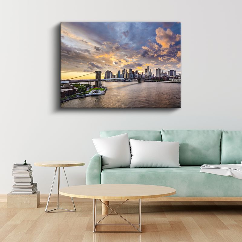 Brooklyn Köprüsü - Altın Saatler Manzarası Kanvas Tablo