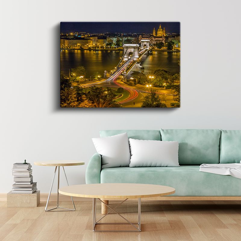 Budapeşte Köprüsü - Gece Işıkları Altında Kanvas Tablo