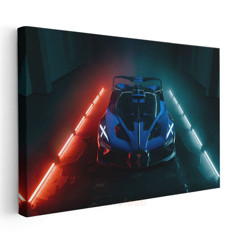 Bugatti Bolide - Neon Işıklar Altında Süper Otomobil Kanvas Tablo