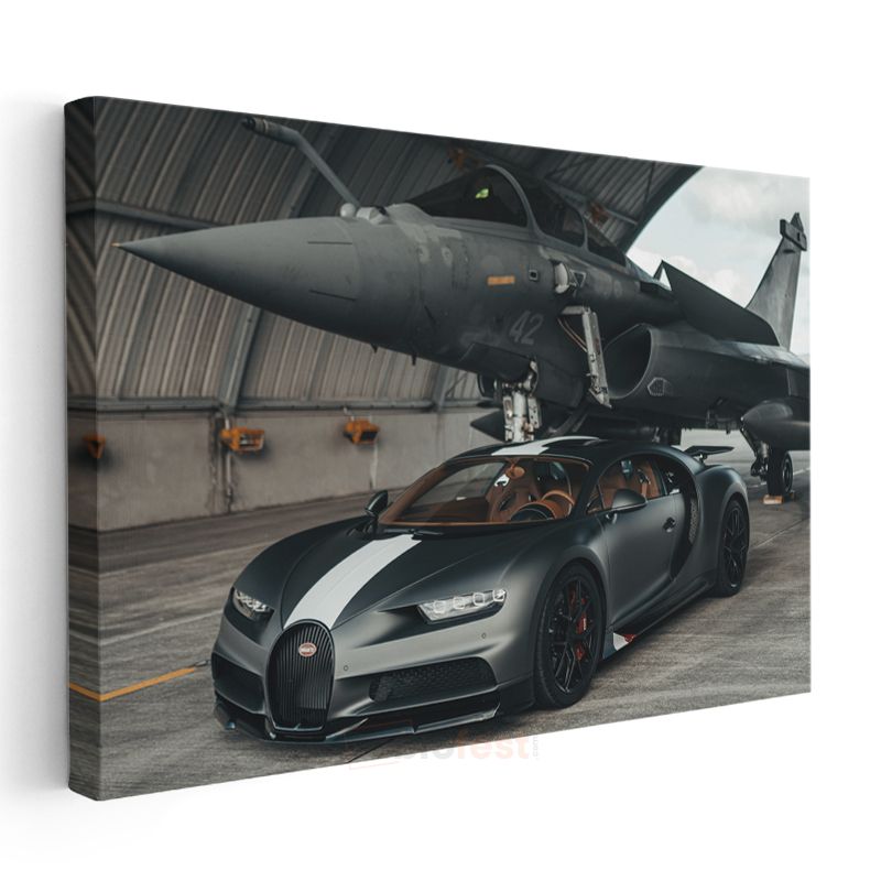 Bugatti Chiron Sport - Savaş Uçağı Yanında Mat Gri Hipercar Kanvas Tablo