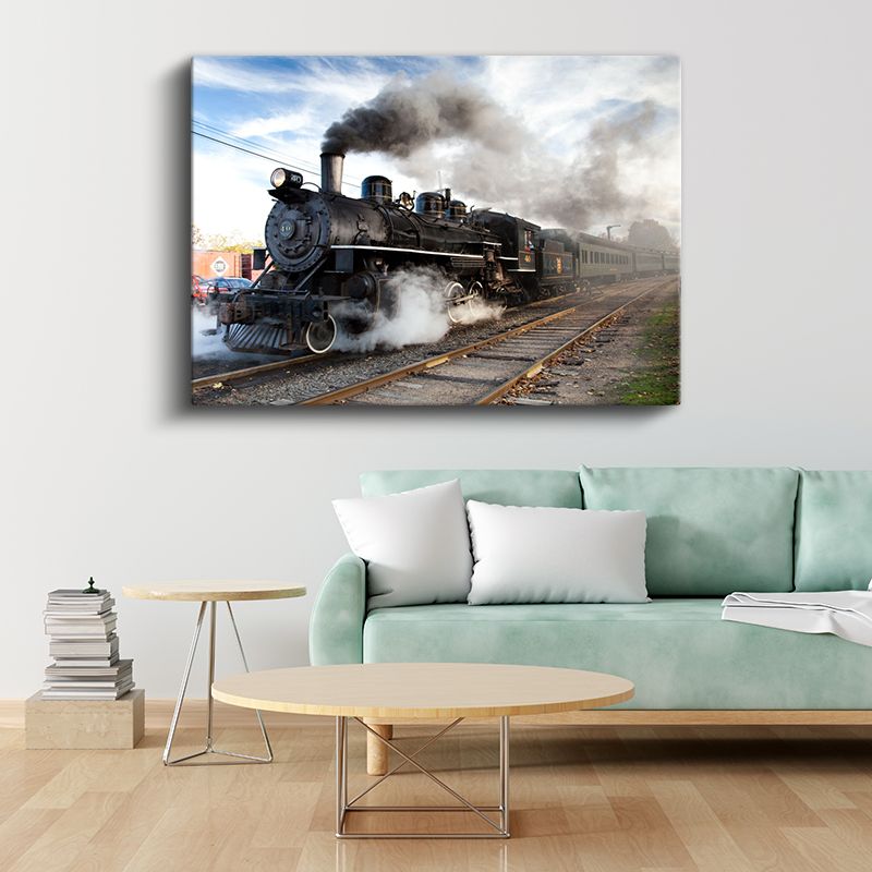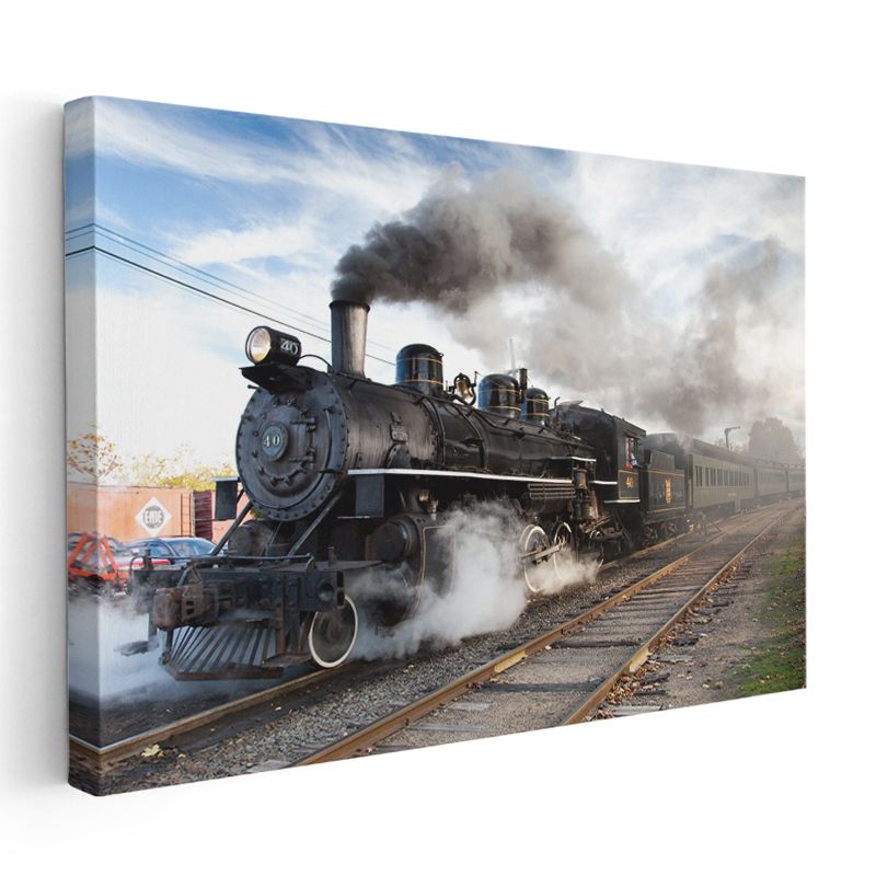 Buharlı Lokomotif 40 - Duman Püskürten Klasik Tren Kanvas Tablo