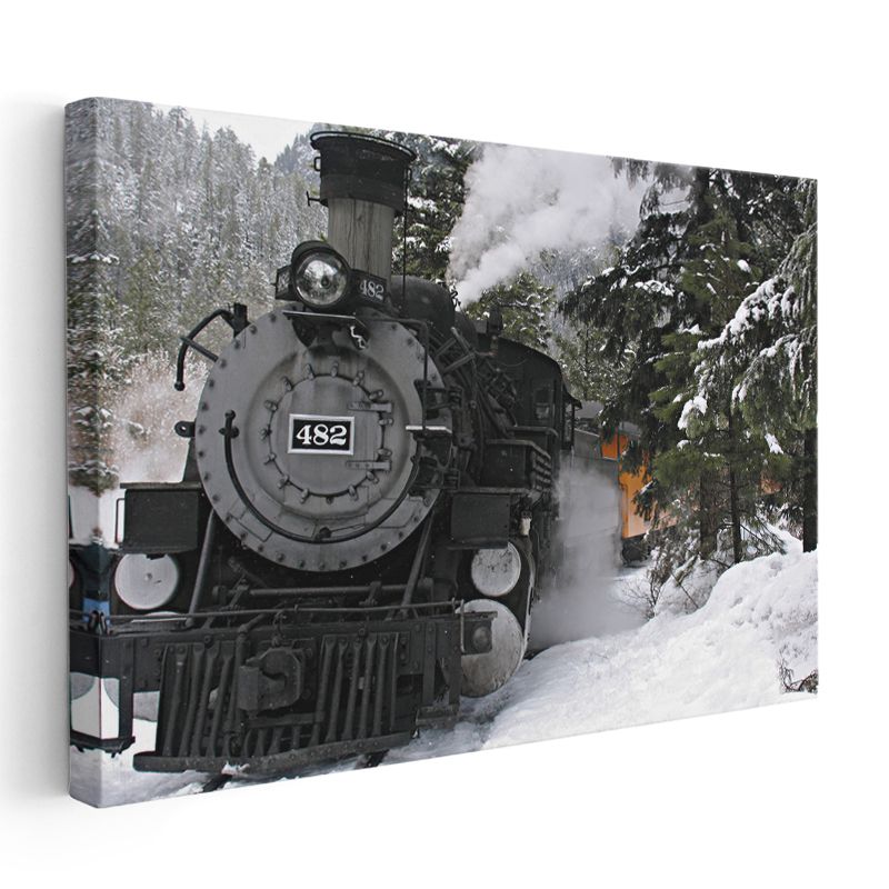 Buharlı Lokomotif 482 - Karlı Dağlarda Nostaljik Tren Kanvas Tablo