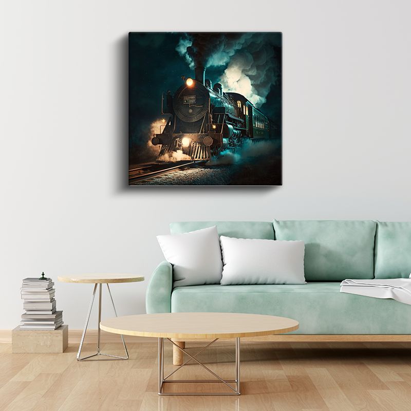 Buharlı Lokomotif - Gece Yolculuğunda Nostaljik Tren Kanvas Tablo