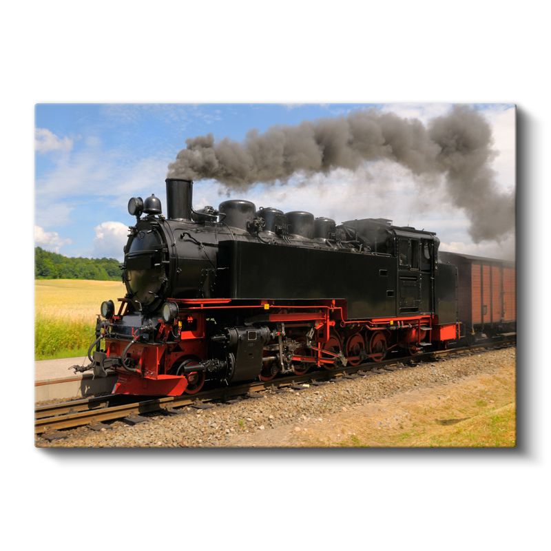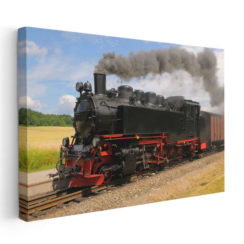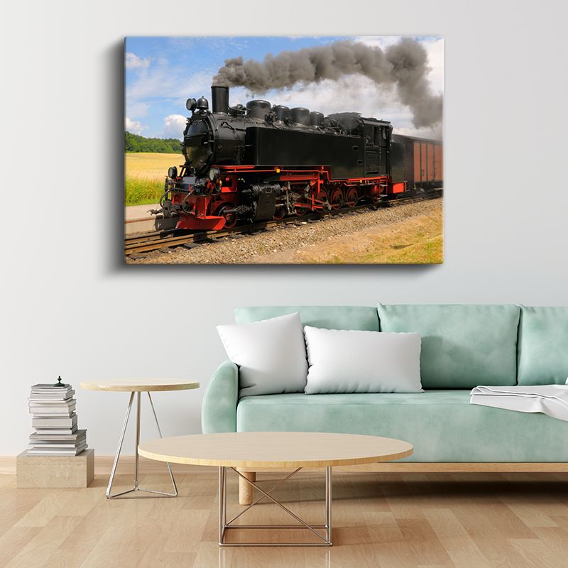 Buharlı Lokomotif - Kırmızı Detaylı Kara Tren Kanvas Tablo