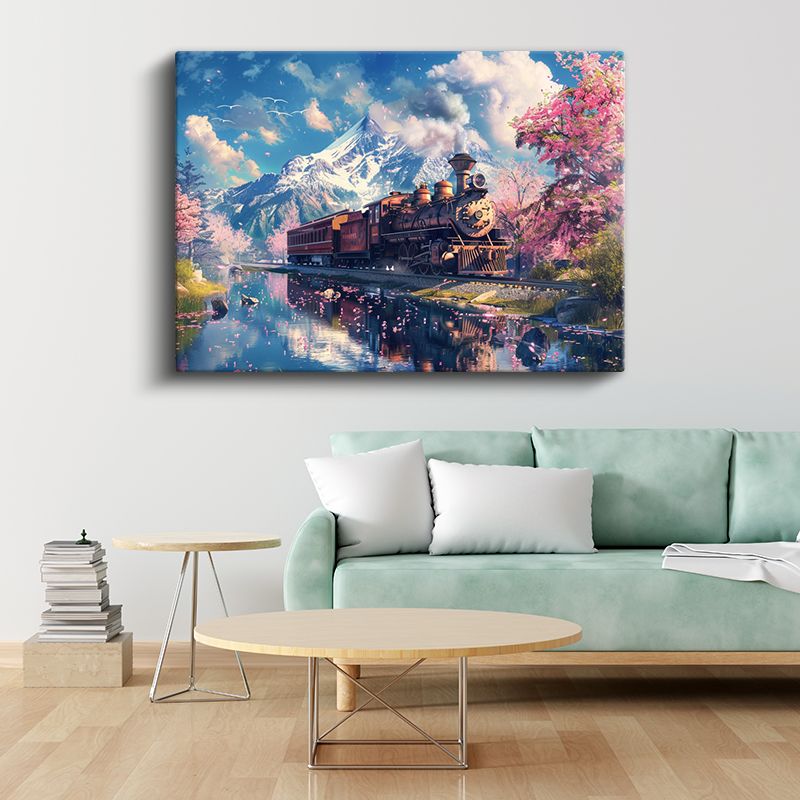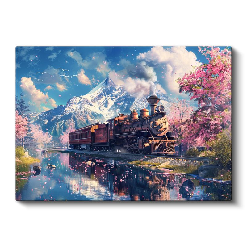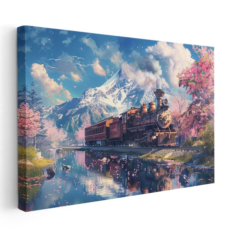 Buharlı Tren - Dağ Manzarasında Nostaljik Yolculuk Kanvas Tablo