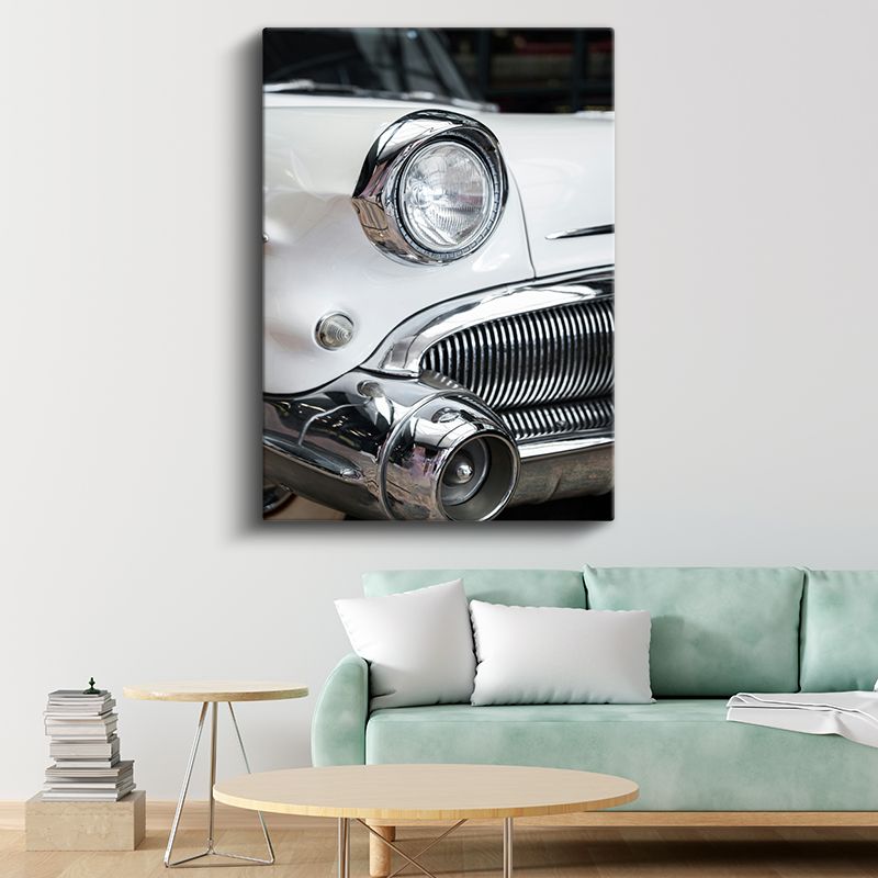Buick Klasik - Beyaz Amerikan Otomobil Detayı Kanvas Tablo