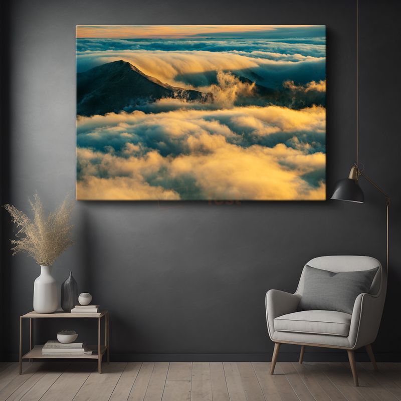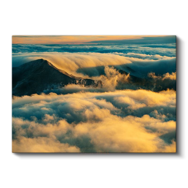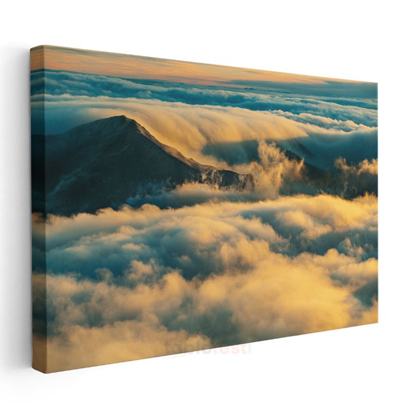Bulutlar Üstünde - Altın Işıklı Dağ Zirvesi Kanvas Tablo