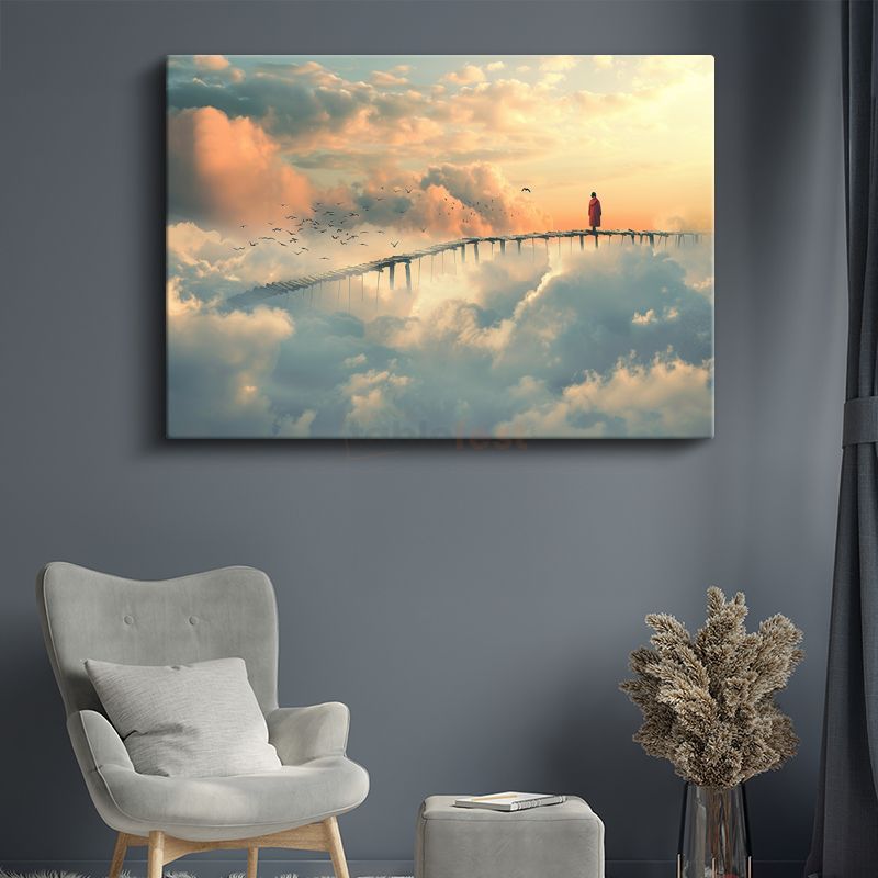 Bulutların Köprüsü - Gökyüzünde Yürüyen Yalnız Figür Kanvas Tablo