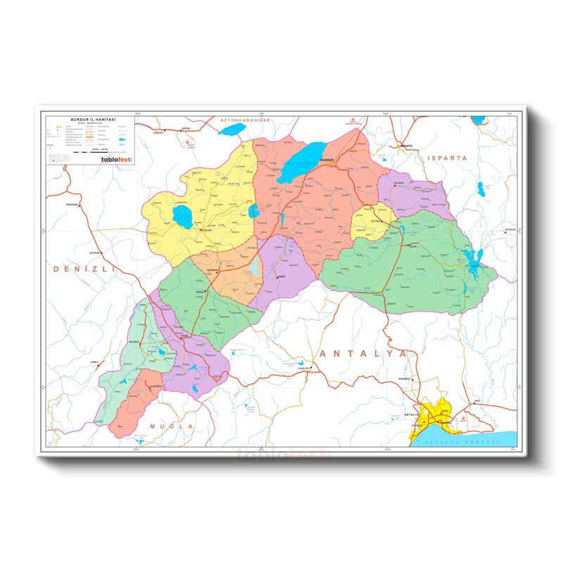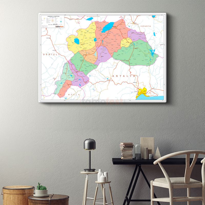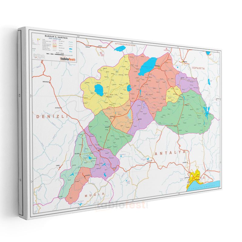 Burdur - İl Haritası Kanvas Tablo