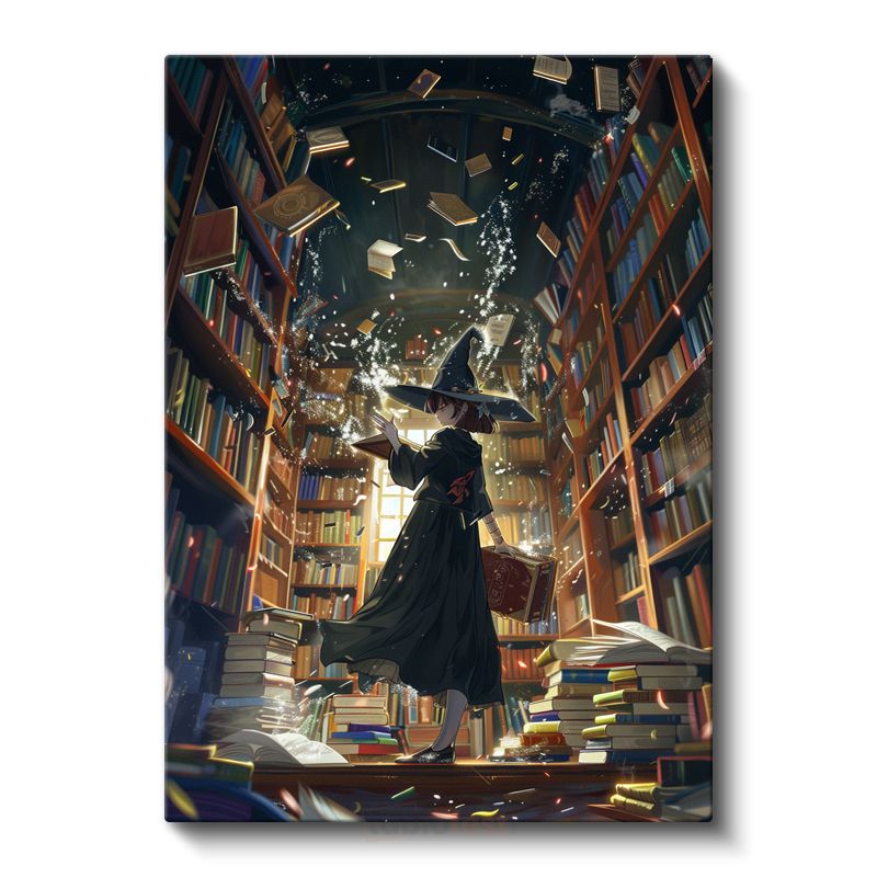 Büyücü Kütüphanesi - Uçuşan Kitaplar Serisi Anime Kanvas Tablo
