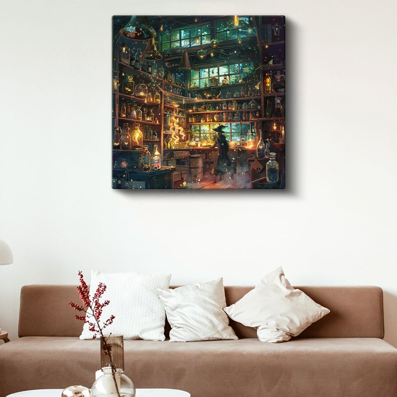 Büyücünün Laboratuvarı - Mistik Şişeler Anime Kanvas Tablo