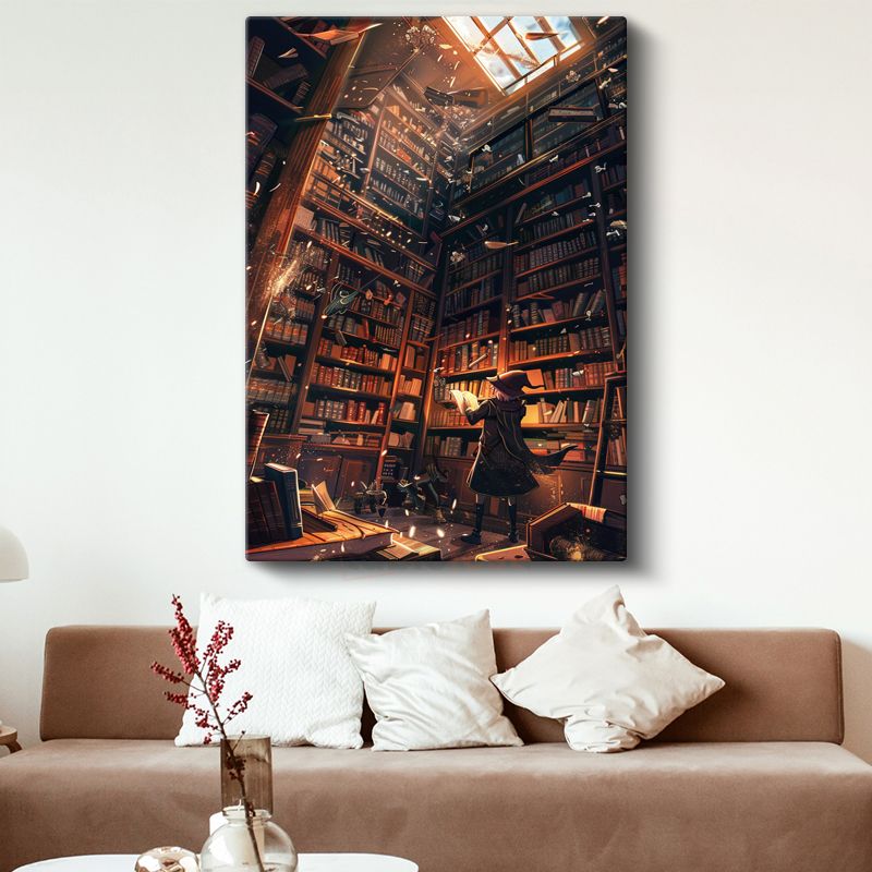 Büyülü Kütüphane - Işıklı Kitap Rafları Anime Kanvas Tablo