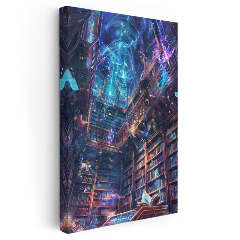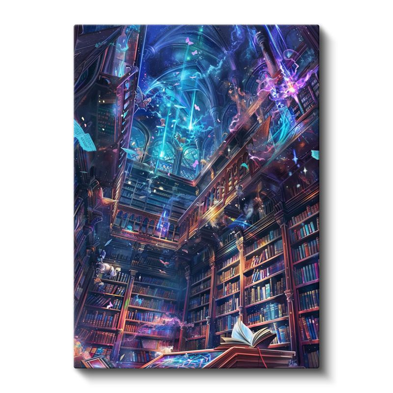 Büyülü Kütüphane - Işıltılı Kitaplar Diyarı Anime Kanvas Tablo