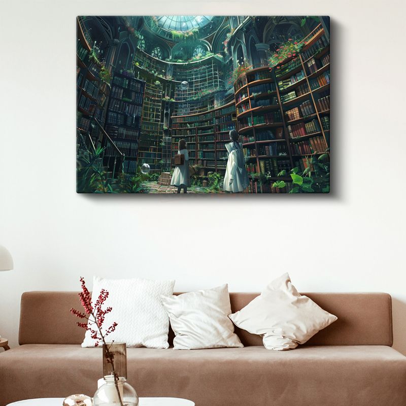 Büyülü Kütüphane - Yeşil Kubbe Anime Kanvas Tablo