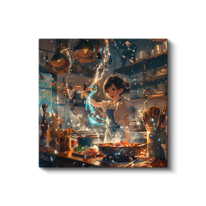 Büyülü Mutfak - Mavi Alevler Anime Kanvas Tablo