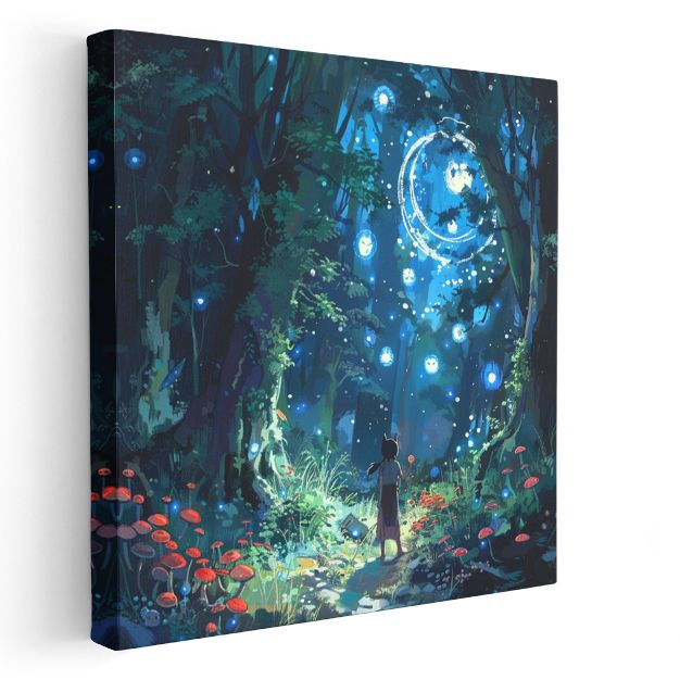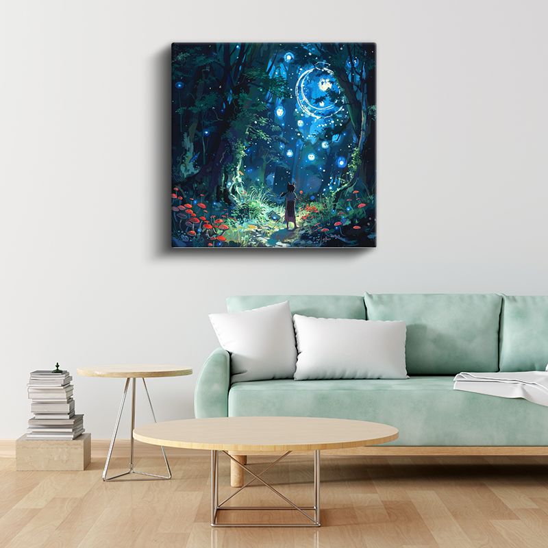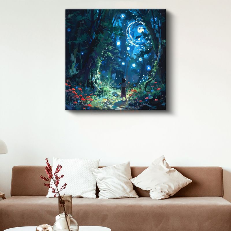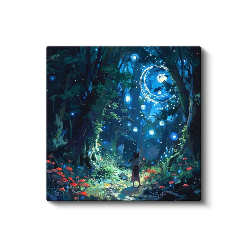 Büyülü Orman - Mavi Ay Işığı Anime Kanvas Tablo
