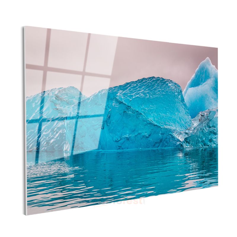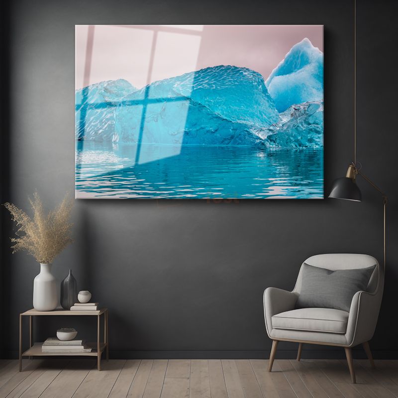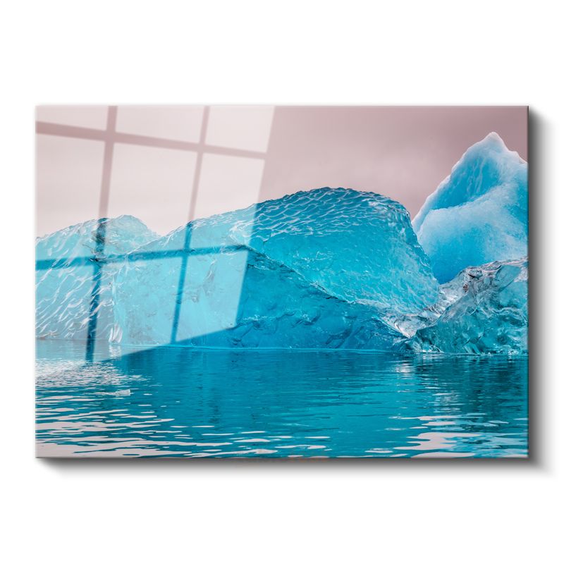 Buz Kristalleri - Turkuaz Buzul Kütleleri Cam Tablo