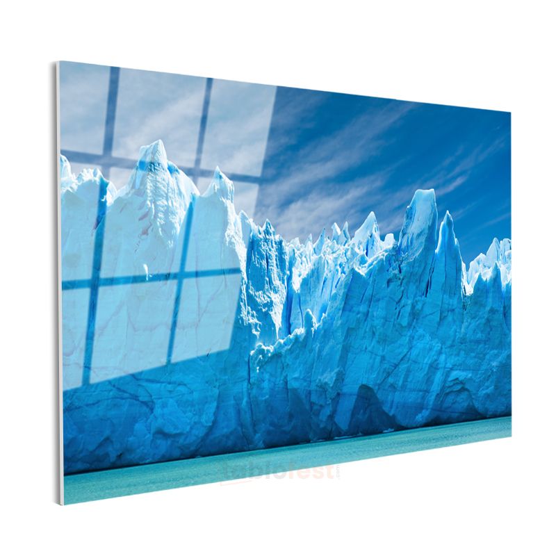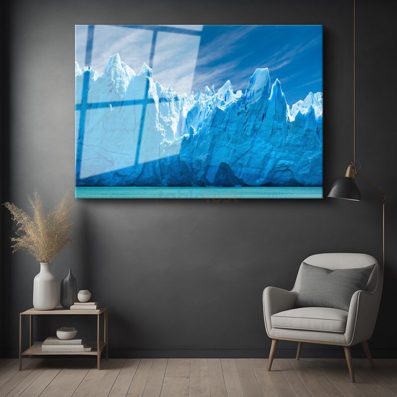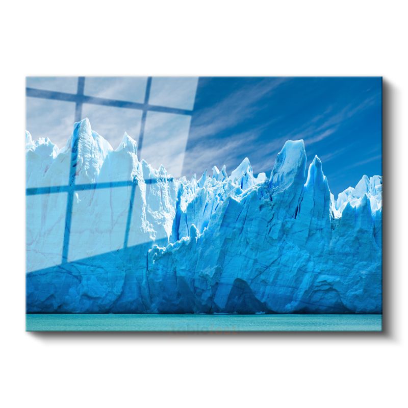 Buzul Heybeti - Turkuaz Suda Yükselen Mavi Buz Dağları Cam Tablo