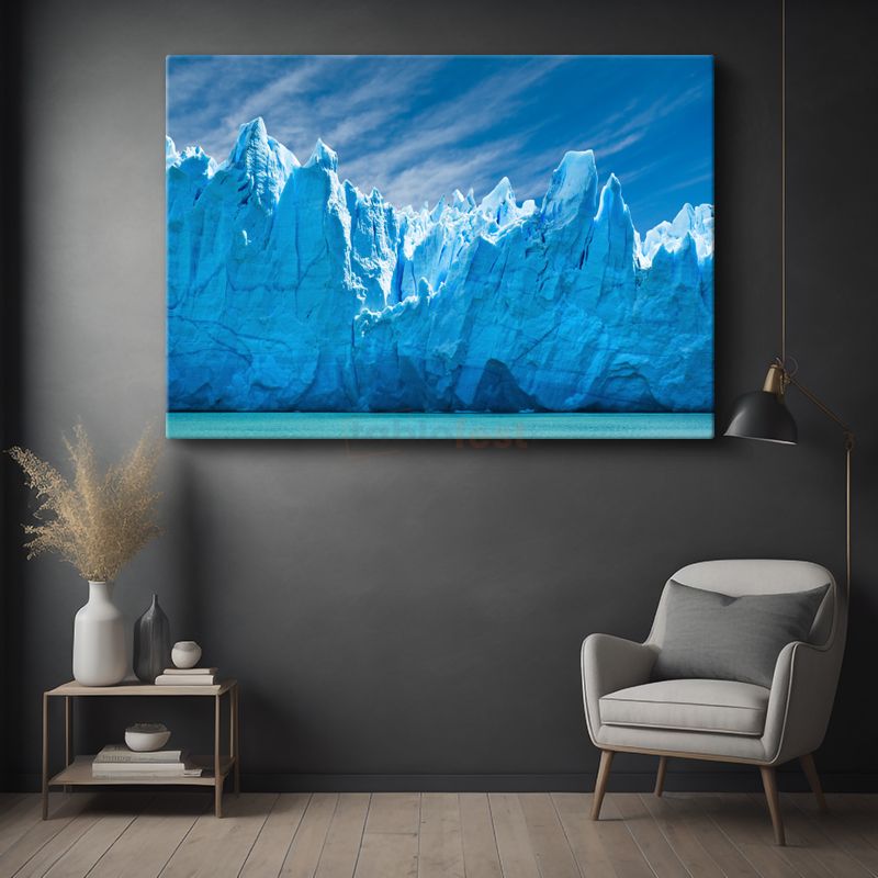 Buzul Heybeti - Turkuaz Suda Yükselen Mavi Buz Dağları Kanvas Tablo