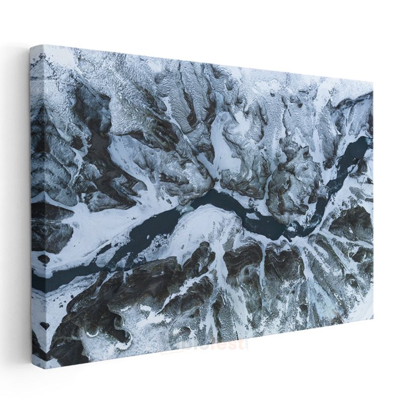 Buzul Kanyonu - Havadan Çekilmiş Karlı Nehir Yatağı Kanvas Tablo