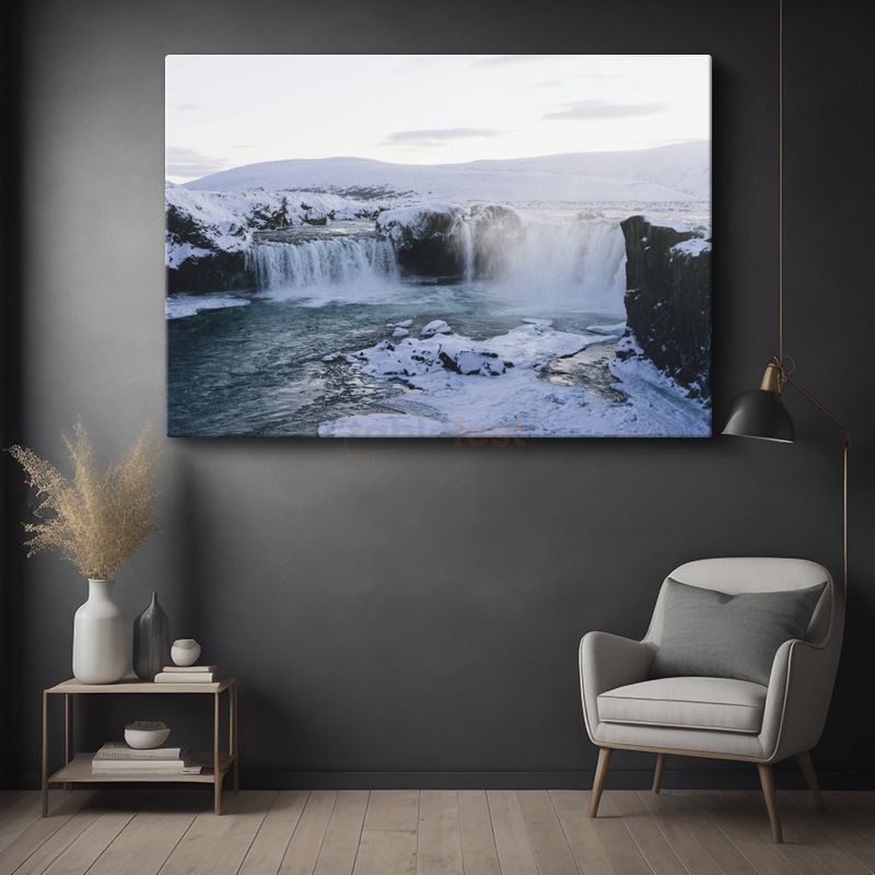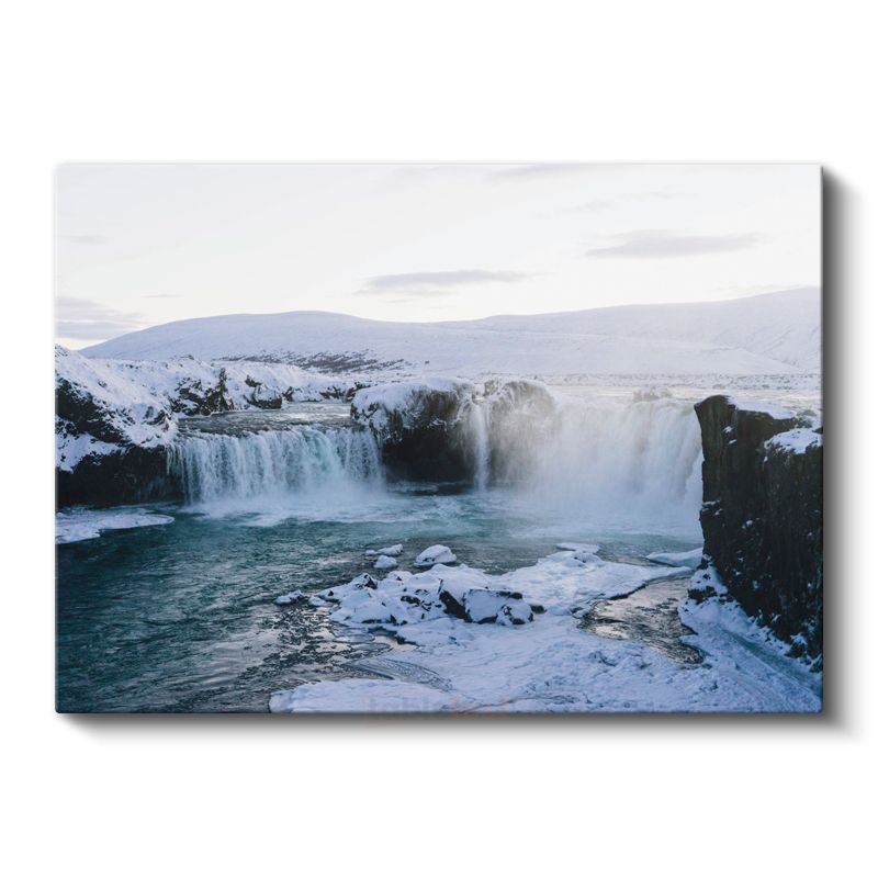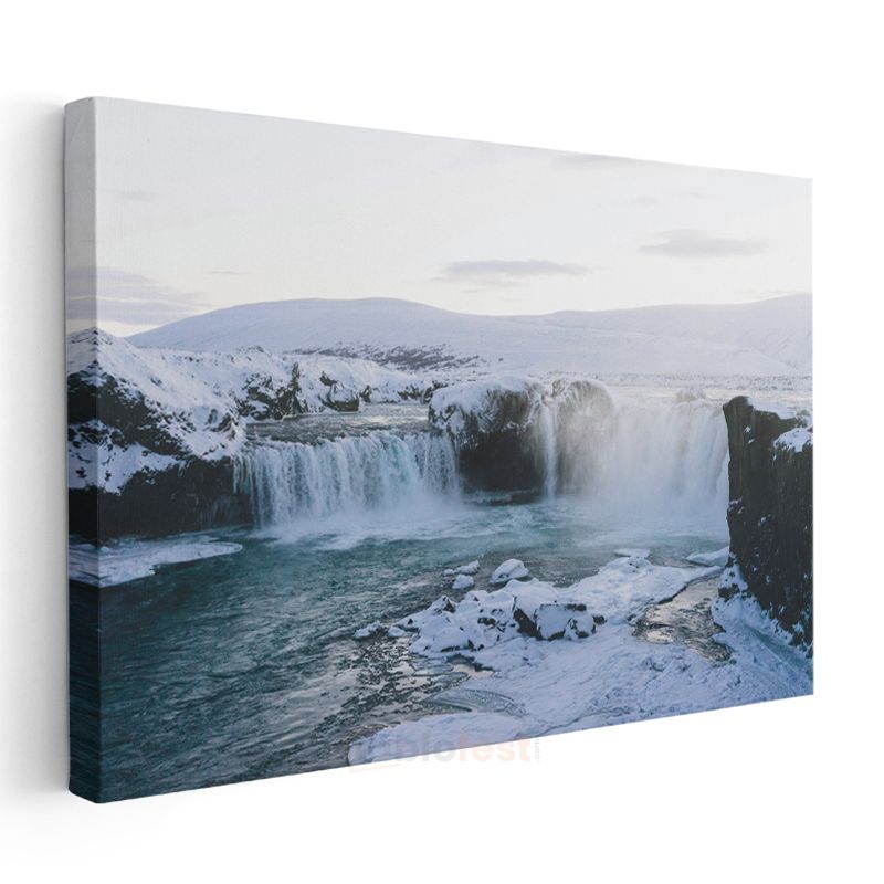 Buzul Şelale - Karlı Dağların Arasında Akan Turkuaz Sular Kanvas Tablo