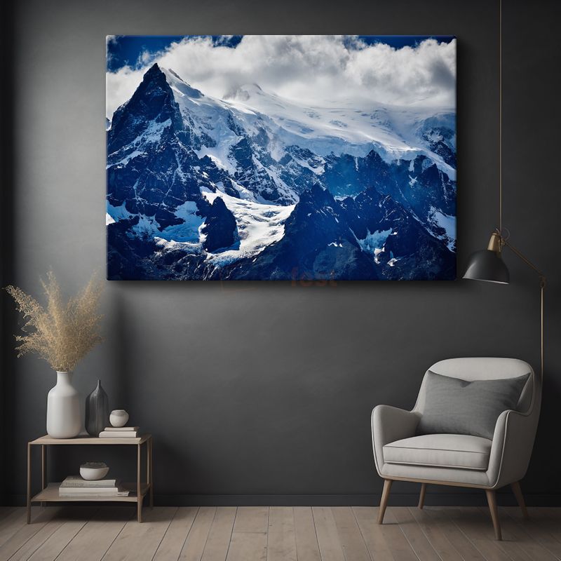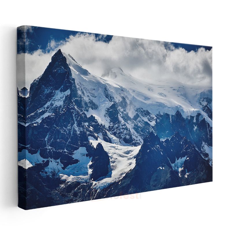 Buzul Zirveler - Mavi Tonlarda Dağ Silsilesi Kanvas Tablo