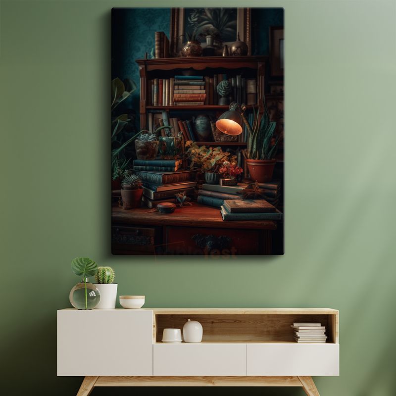 Çalışma Masası - Botanik Kitap Düzenlemesi Kanvas Tablo