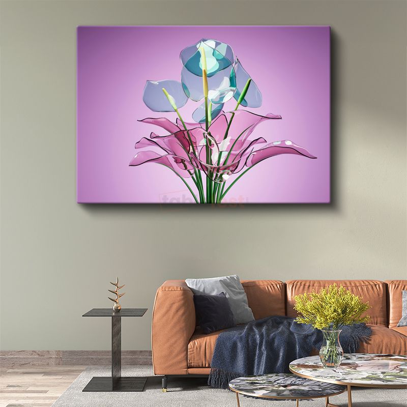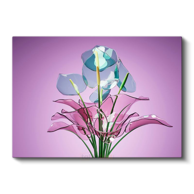 Cam Çiçekler - Mor Zeminde Şeffaf Floral Kompozisyon Kanvas Tablo