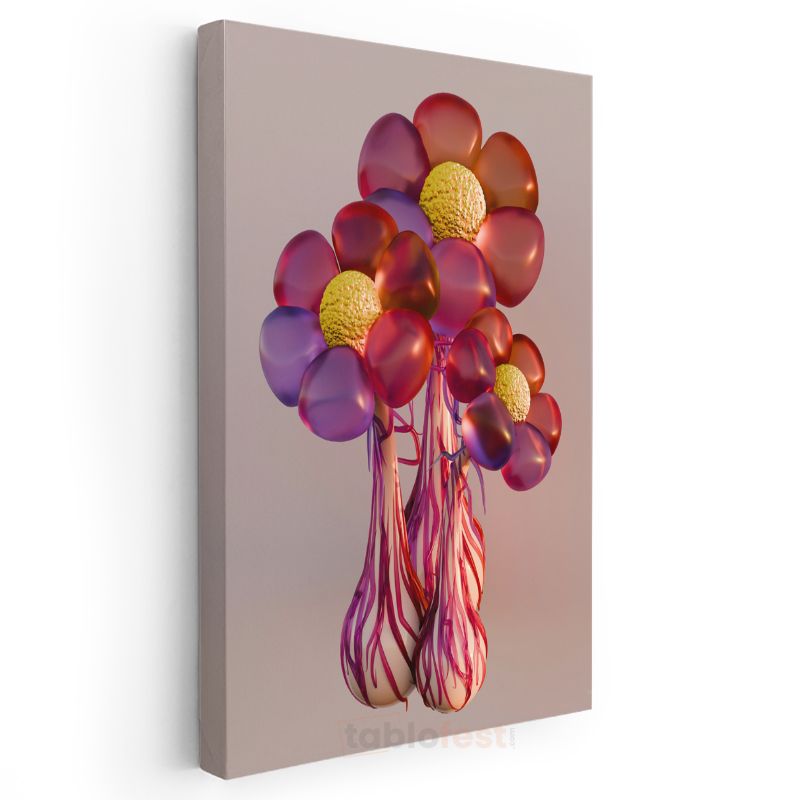 Cam Çiçekler - Parlak Renkli 3D Kompozisyon Kanvas Tablo