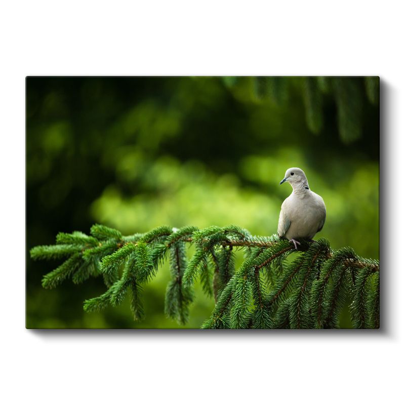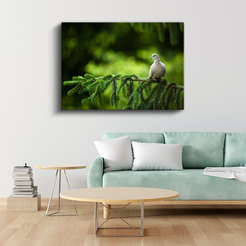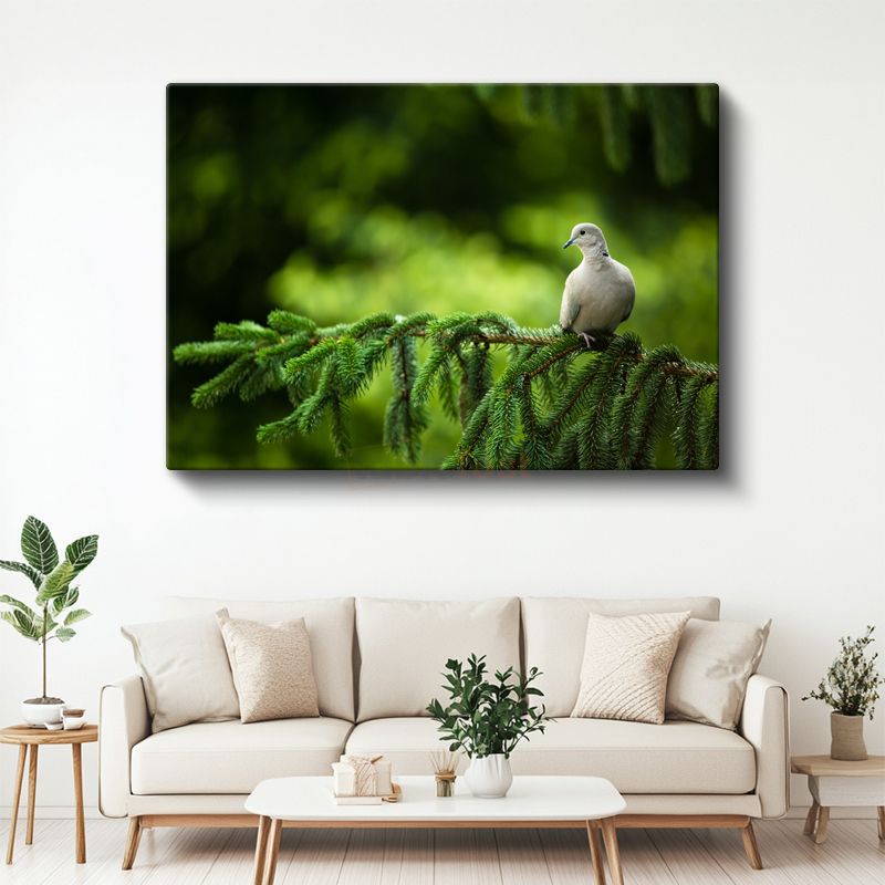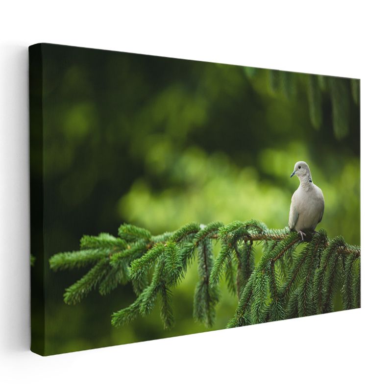Çam Dalındaki Güvercin - Huzur Veren Beyaz Kuş Kanvas Tablo