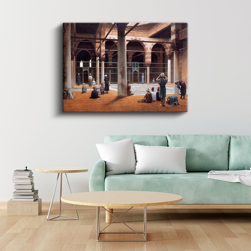Cami İçi - İbadet Eden Müslümanlar Kanvas Tablo