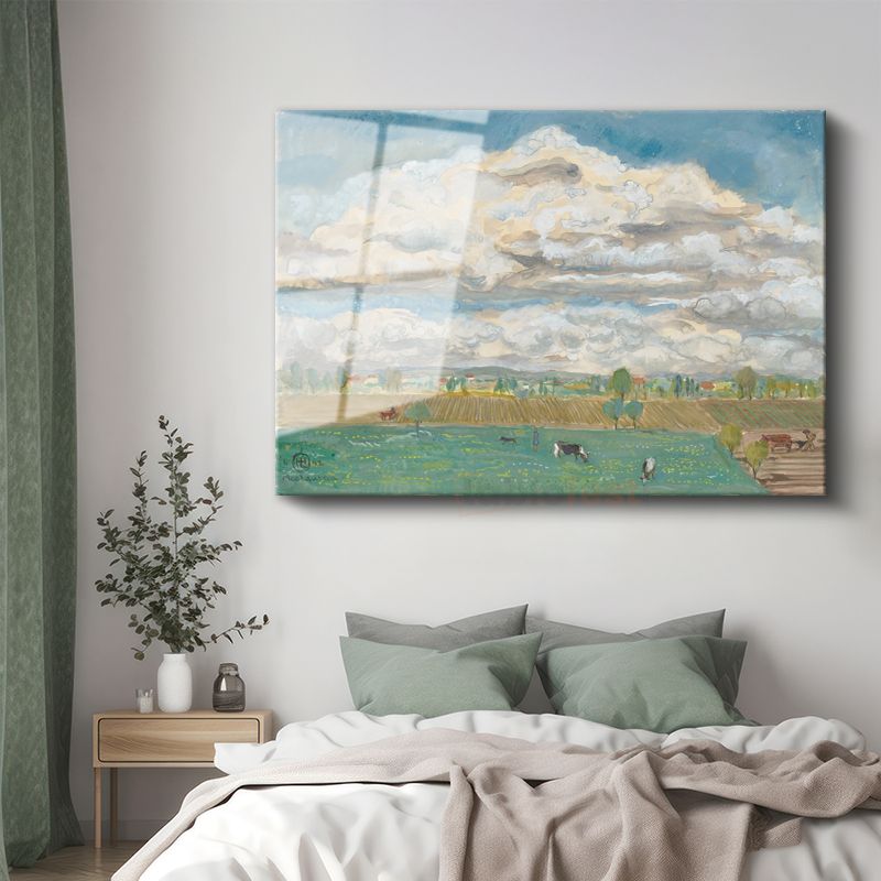 Camille Pissarro - Kırsal Manzara ve Bulutlar Cam Tablo