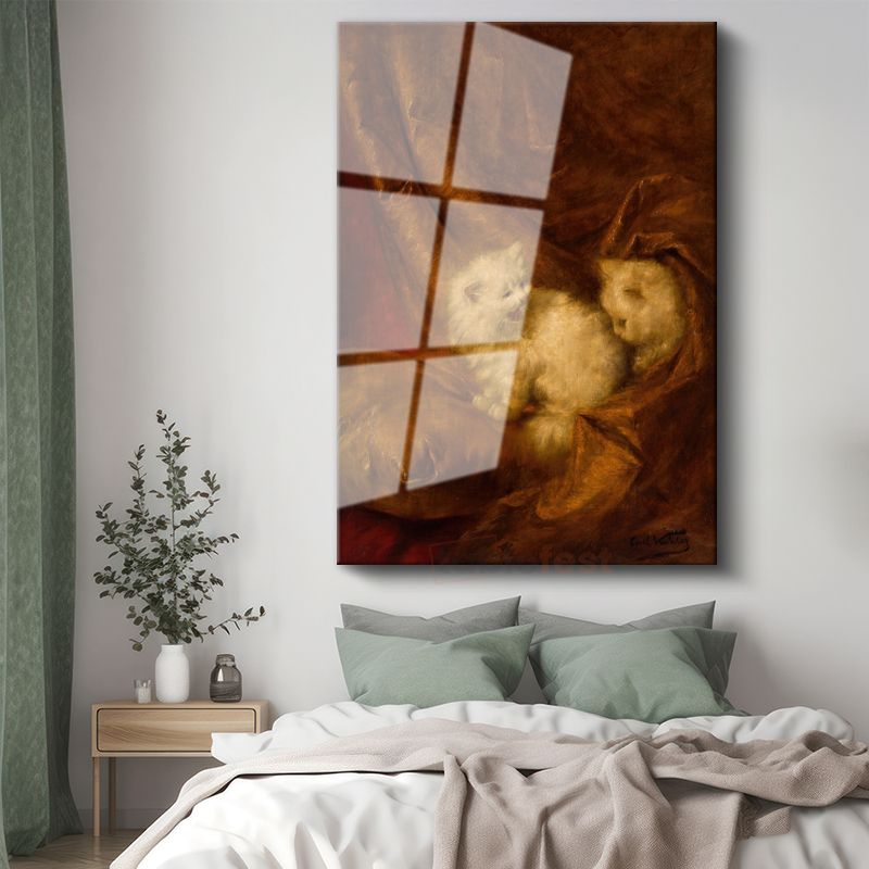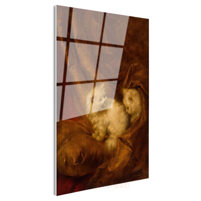 Carl Kahler - Kahverengi Kumaştaki Kediler Cam Tablo