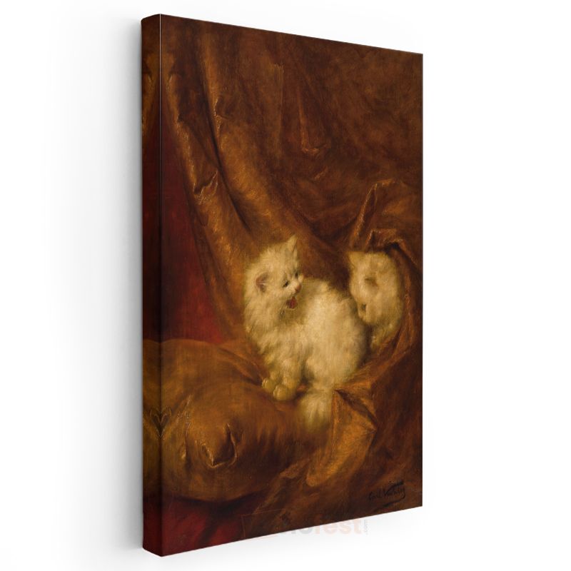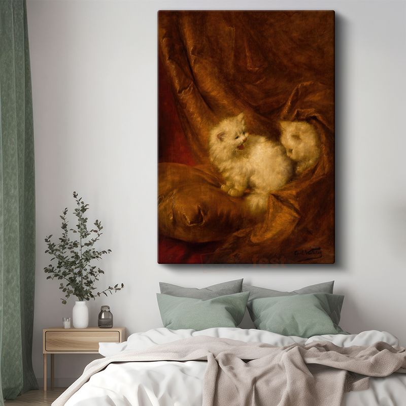 Carl Kahler - Kahverengi Kumaştaki Kediler Kanvas Tablo