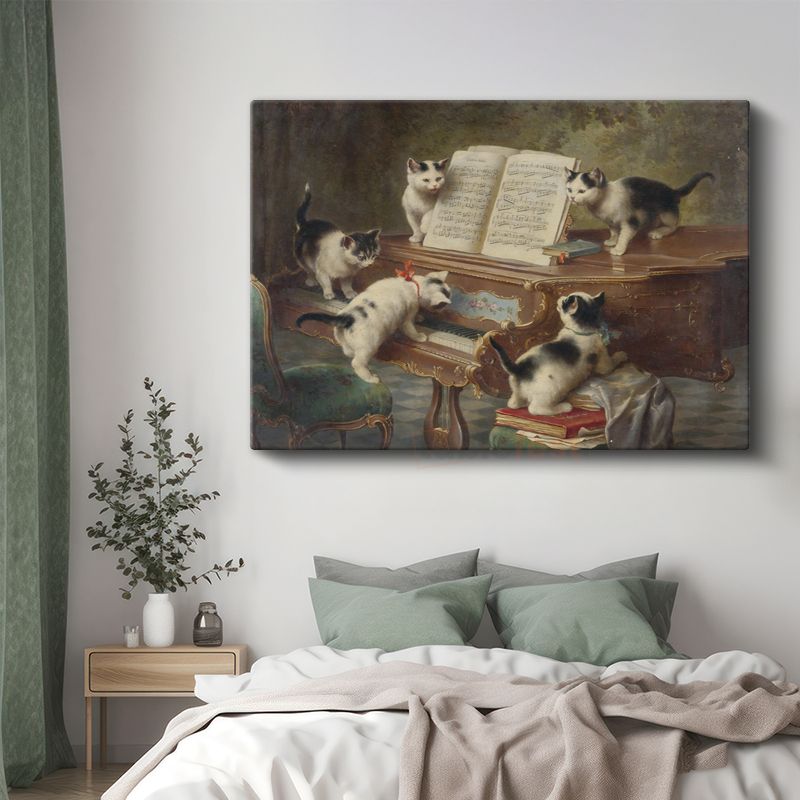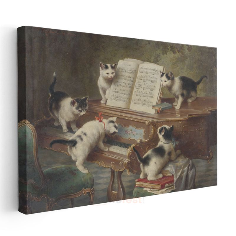 Carl Reichert - Piyano Başındaki Kediler Kanvas Tablo