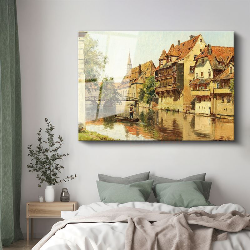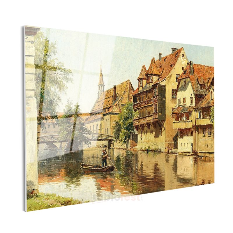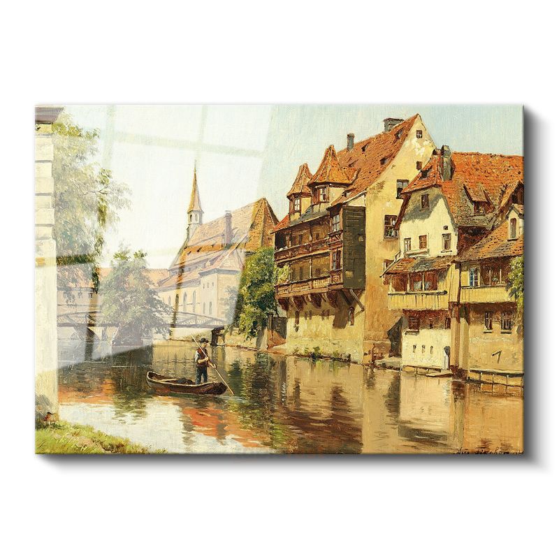 Carl Spitzweg - Nehir Kenarında Tarihi Evler Cam Tablo