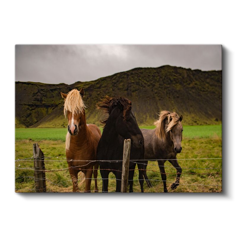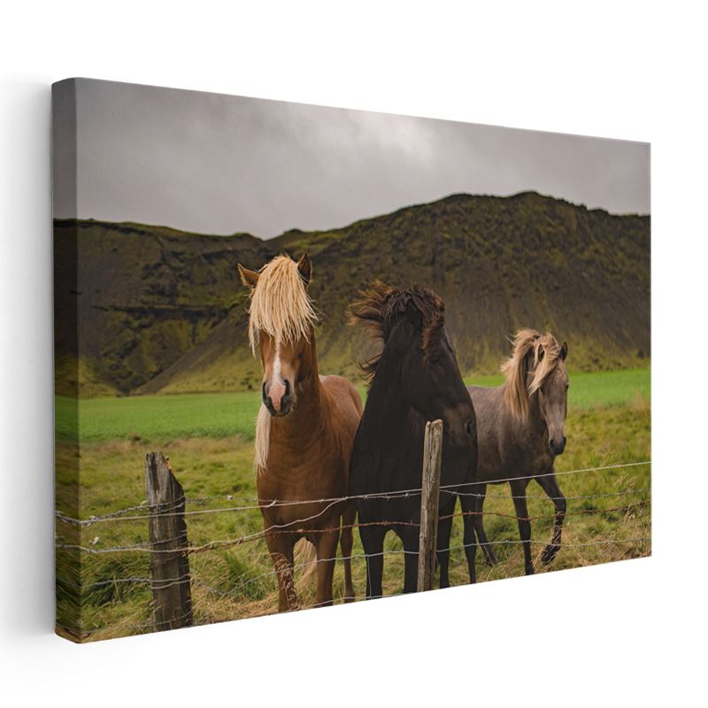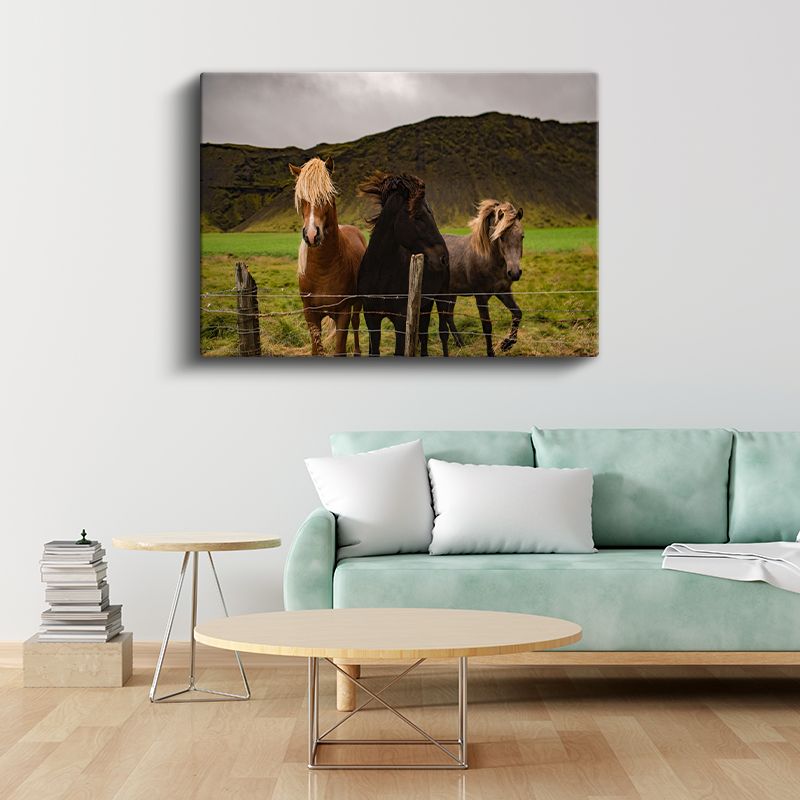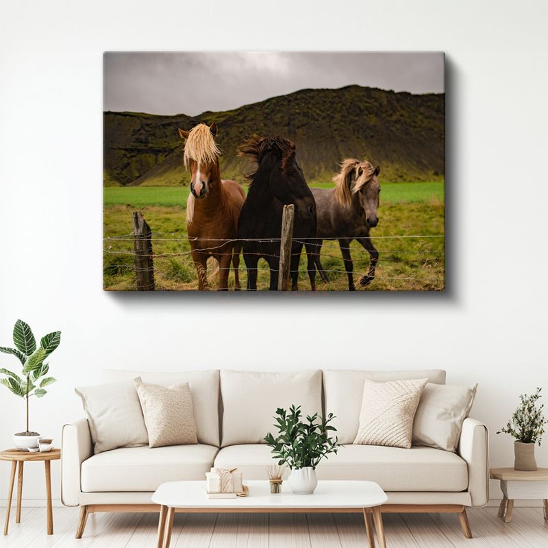 Çayır Dostları - Çit Kenarındaki Üç At Kanvas Tablo