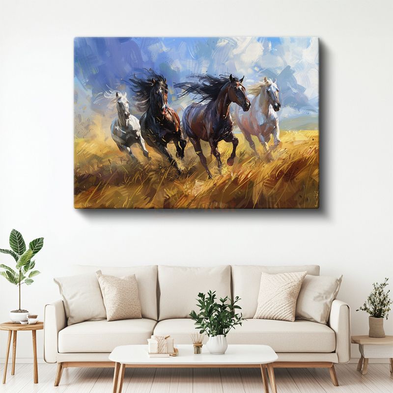 Çayırda Dörtnala - Özgür Ruhların Rüzgarla Yarışı Kanvas Tablo
