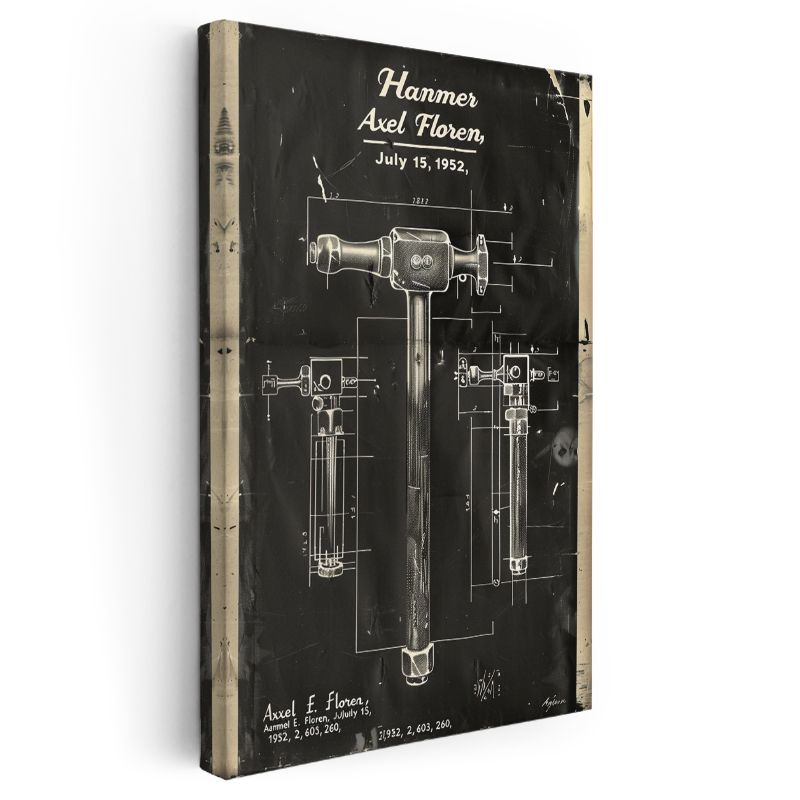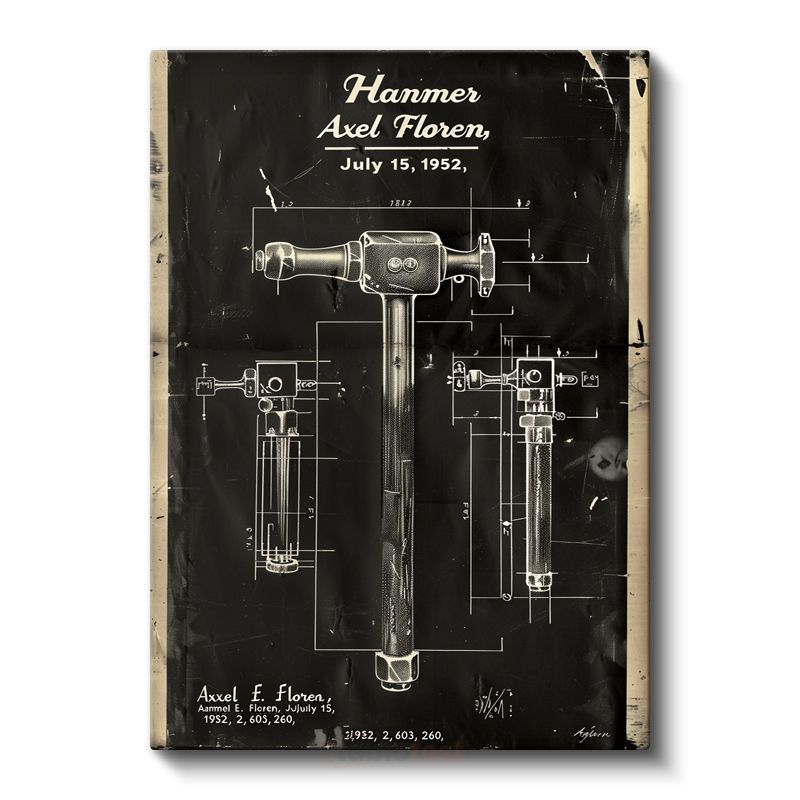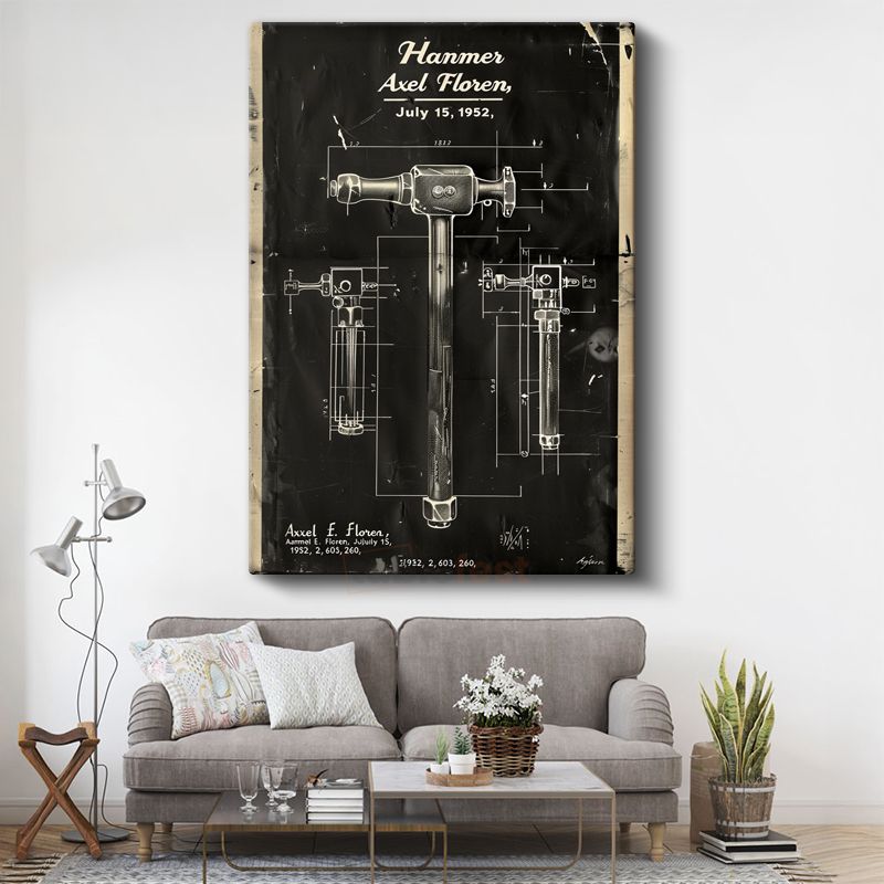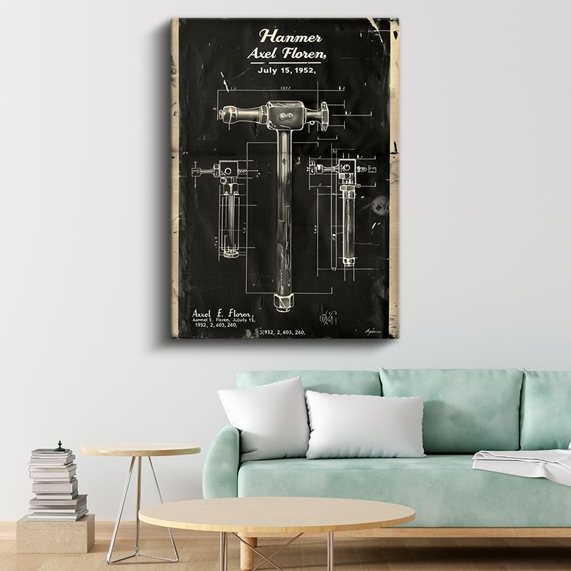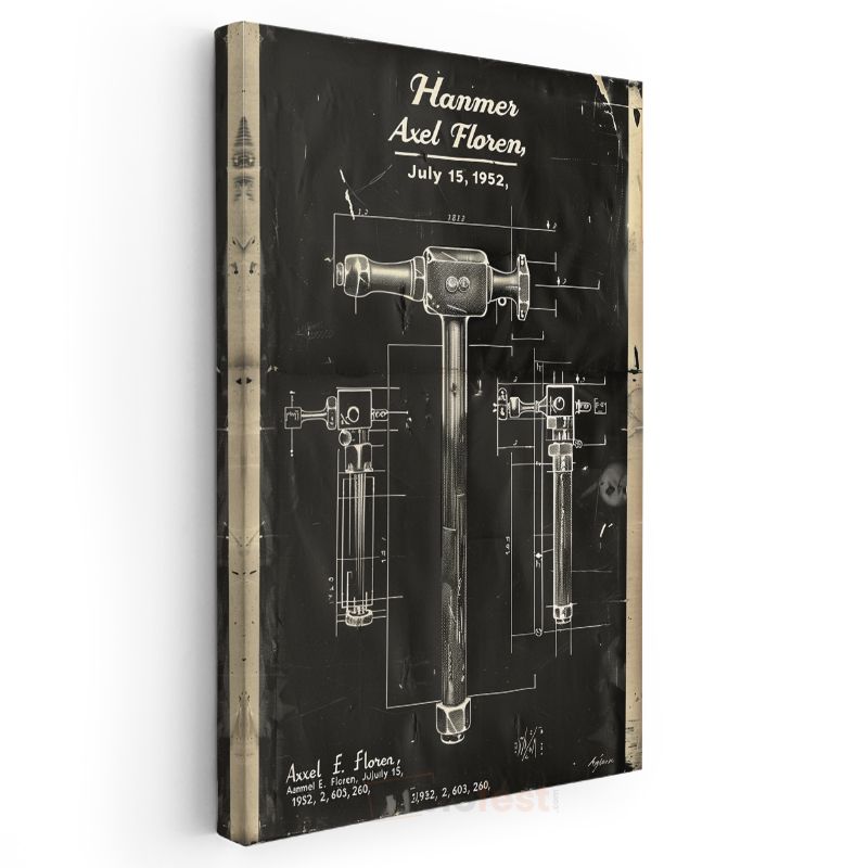 Çekiç - Klasik El Aleti Patent Çizimi Kanvas Tablo