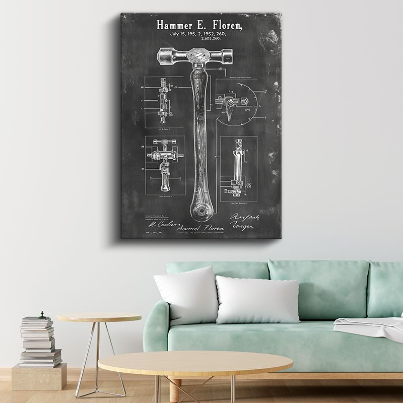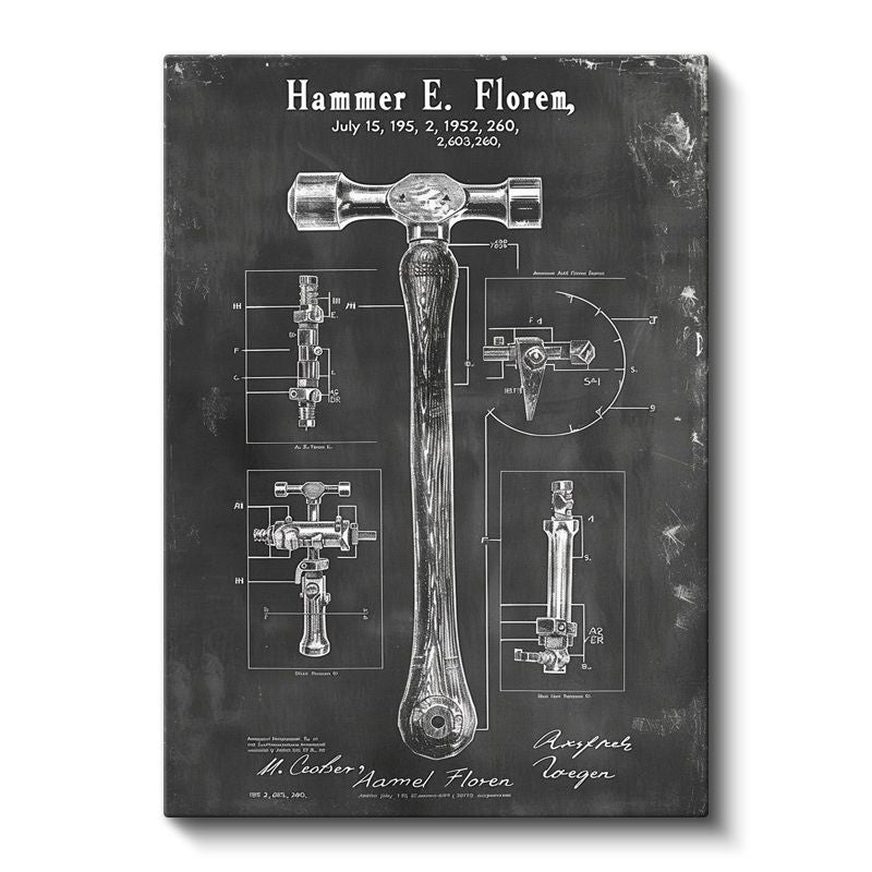 Çekiç Patenti - 1952 Tarihli Vintage El Aleti Tasarımı Kanvas Tablo